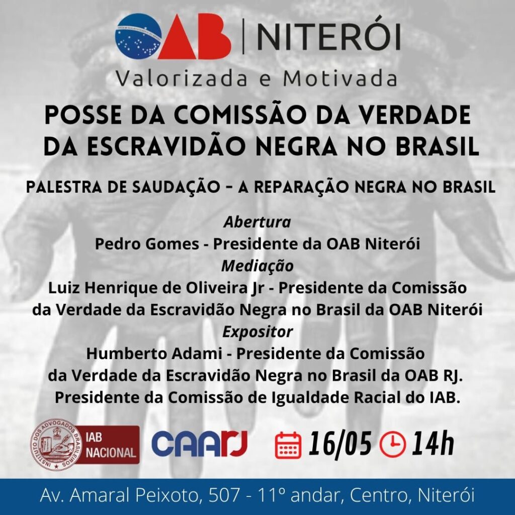 Início » Eventos » Eventos parceiros » 2022 Parceiros » Maio » [OAB – Niterói] Posse da Comissão da Verdade da Escravidão Negra no Brasil