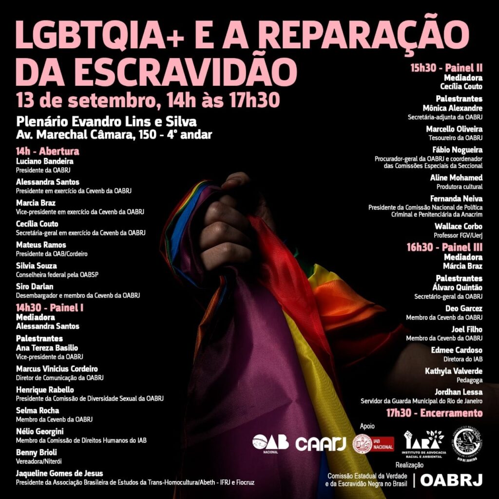 Início » Eventos » Eventos parceiros » 2022 Parceiros » Setembro » [OAB/RJ] LGBTQIA+ e a reparação da escravidão