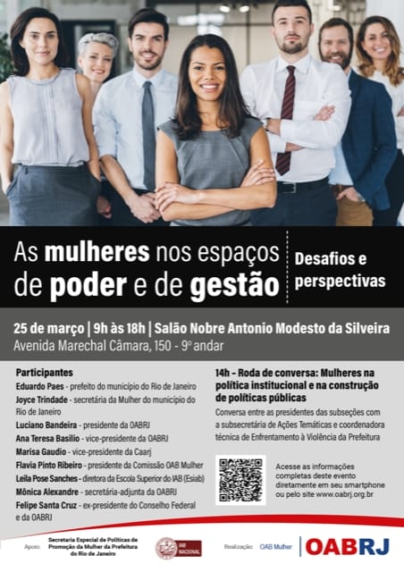 Início » Eventos » Eventos parceiros » 2022 Parceiros » Março » [OABRJ] As mulheres nos espaços de poder e de gestão. Desafios e perspectivas