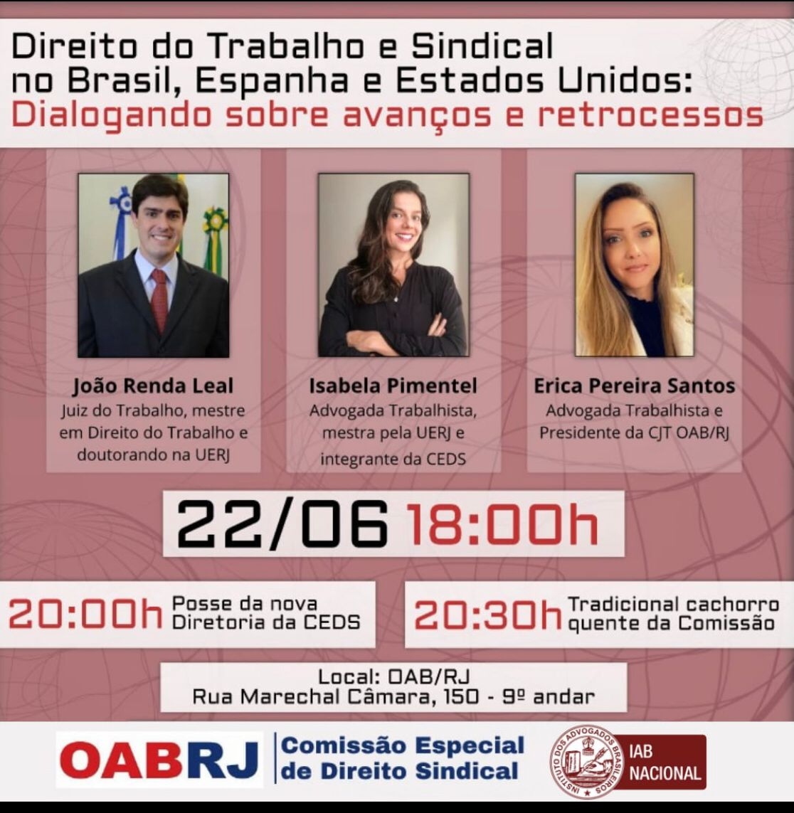 Início » Eventos » Eventos parceiros » 2022 Parceiros » Junho » [OABRJ] Direito do Trabalho e Sindical no Brasil, Espanha e Estados Unidos