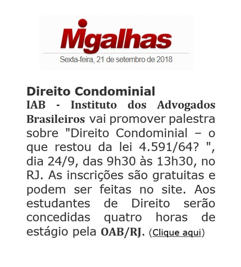Início » IAB na imprensa » Palestra sobre direito condominial