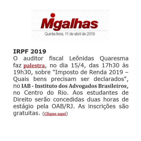 Início » IAB na imprensa » Palestra sobre o IRPF 2019