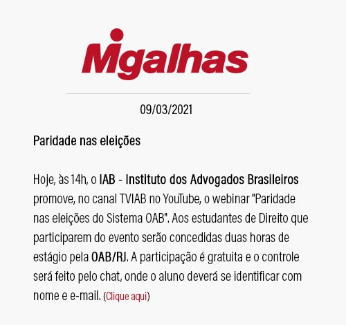 O IAB é o Instituto dos Advogados Brasileiros, entidade jurídica mais antiga do país, fundada em 1843.