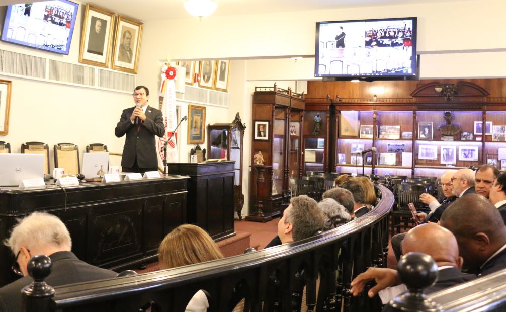 O diploma conferido a Sanches tem o nome do escritor, professor, advogado e deputado federal que dedicou mais de 40 anos de vida à Assembleia do Rio. “O Instituto continuará atrelado, comprometido e vinculado aos ideais de Ulysses Guimarães na defesa do Estado Democrático de Direito e na defesa da Constituição brasileira”, garantiu o homenageado. Bernardo Cabral sublinhou que a importância da comenda é dada por sua origem: “Você precisa entender qual é a instituição que lhe condecora para dar valor ao que recebe. O Poder Legislativo é o poder mais autêntico dos Três Poderes porque nenhum outro tem as portas abertas para que o povo entre”. O ex-senador constituinte apontou para a galeria de presidentes que fica no plenário do IAB e lembrou que a foto de Sanches estará entre os célebres juristas que conduziram a Casa de Montezuma após o fim de sua gestão. “Você está com uma audiência marcada com a posteridade”, completou.