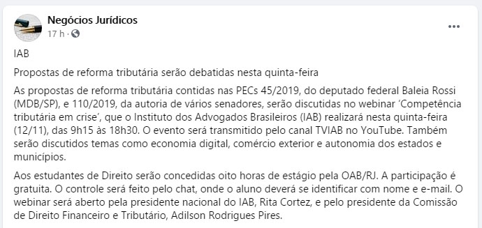 O IAB é o Instituto dos Advogados Brasileiros, entidade jurídica mais antiga do país, fundada em 1843.