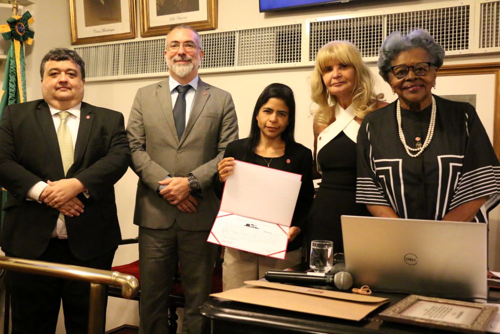 O Instituto dos Advogados Brasileiros (IAB) ganhou quatro novos associados, dois homens e duas mulheres, nesta quarta-feira (18/3). Foram empossados como membros efetivos Felipe Eduardo Portela de Paulo, Polyana Sayuri Carvalho Yazaki, Samara Ohanne Guimarães Vieira e Marlon Jacinto Reis. Eles leram o compromisso de posse da Casa de Montezuma durante a sessão plenária, conduzida pela presidente nacional da entidade, Rita Cortez.