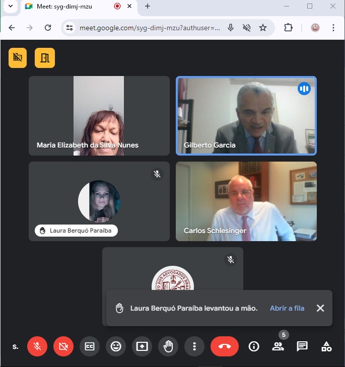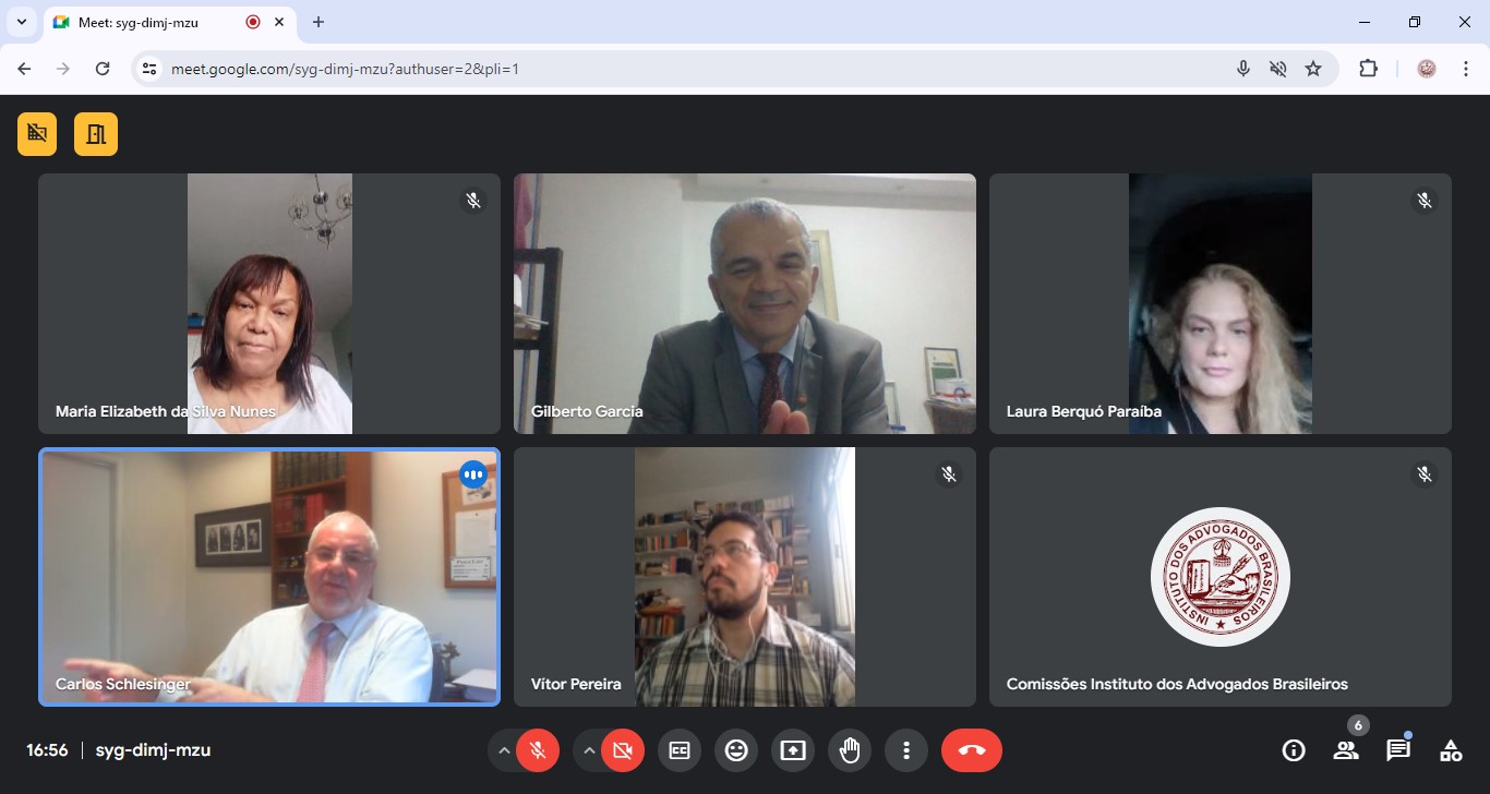 A Comissão de Direito e Liberdade Religiosa-IAB/Nacional reunida virtualmente, em 24.04.2024, as 16h05, Sediada no IAB/Nacional, Av. Marechal Câmara, 210, 2º Andar, Centro, Rio/RJ, concomitantemente, através da Plataforma ‘Google Meet’ disponibilizada pela Liderança Tecnológica do IAB, sob a Presidência do Dr. Gilberto Garcia, e Contando com a Participação Eletrônica dos Membros: Dr. Carlos Roberto Schlesinger (1º Vice-Presidente), Dr. Vitor Pimentel Pereira, Dra. Maria Elizabeth da Silva Nunes; e, a Dra. Laura Berquó (João Pessoa/PB); Anotando-se a Justificativa de Ausência do Dr. João Theotonio Mendes de Almeida Junior (2º Vice-Presidente), Dr. Leonardo Iório. e, Dr. Luiz Claudio Gonçalves Junior (Guaratinguetá/SP); tendo sido Apreciados os Itens da Pauta, pelos Membros Presentes na Reunião: 002/2024, Bimensal Virtual, (On-Line), deste dia: