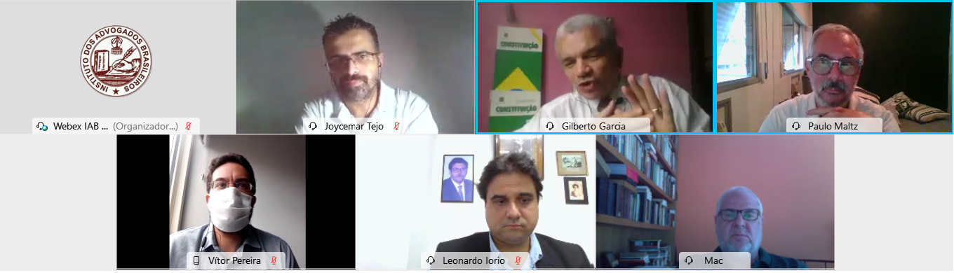 Webex, provida pela IAB, sob a presidência do Dr. Gilberto Garcia, contando com a presença do Dr. Carlos Schlesinger (1º Vice-Presidente), Dr. Joycemar Tejo (2º Secretário), Dr. Paulo Maltz, Dr. Leonardo Iório, e, Dr. Vítor Pereira. Na Reunião Ordinária On-Line foram apreciados os seguintes itens da pauta, pelos membros da Comissão presentes: