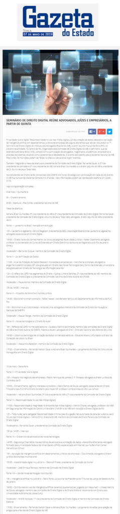FONTE: Gazeta do Estado (GO) – 07/05/2019