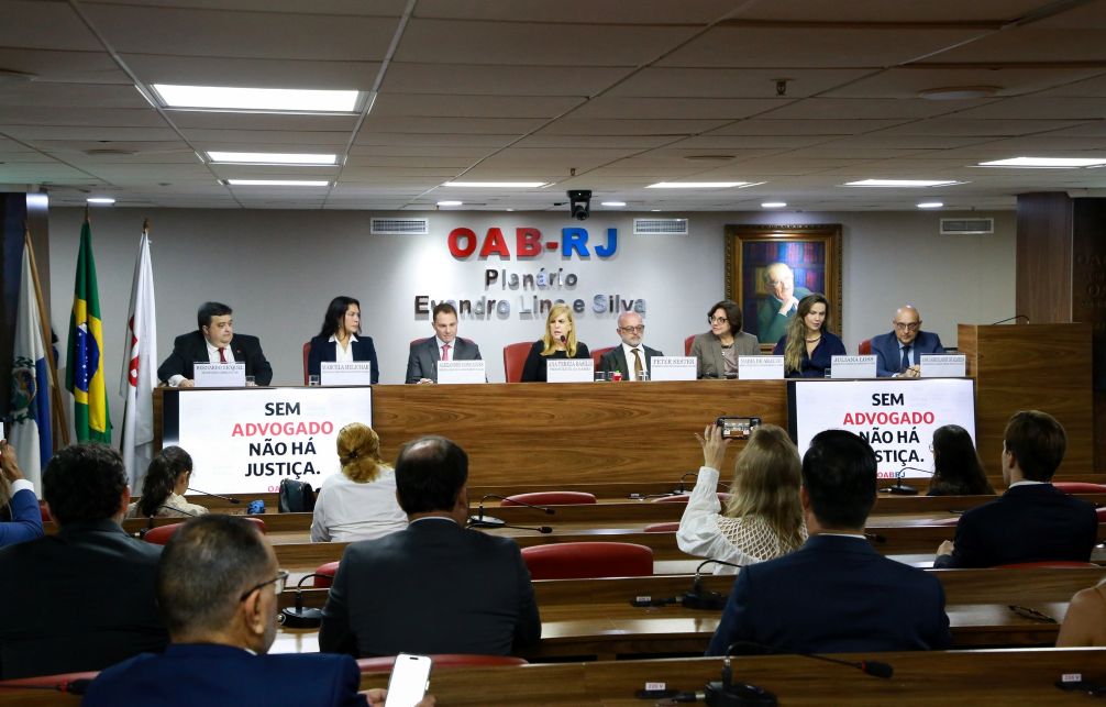 Compuseram a mesa de abertura do evento, além de Bernardo Gicquel, a presidente da OAB/RJ, Ana Tereza Basilio, a membro da Comissão Especial das Relações Mercosul-UE da OAB/RJ Nadia de Araujo, os presidentes das Comissões de Arbitragem da OAB/RJ, Juliana Loss, e Brasil-França da Seccional, José Gabriel Assis de Almeida, além de Alexandre Gonçalves, Peter Sester e Marcela Melichar.
