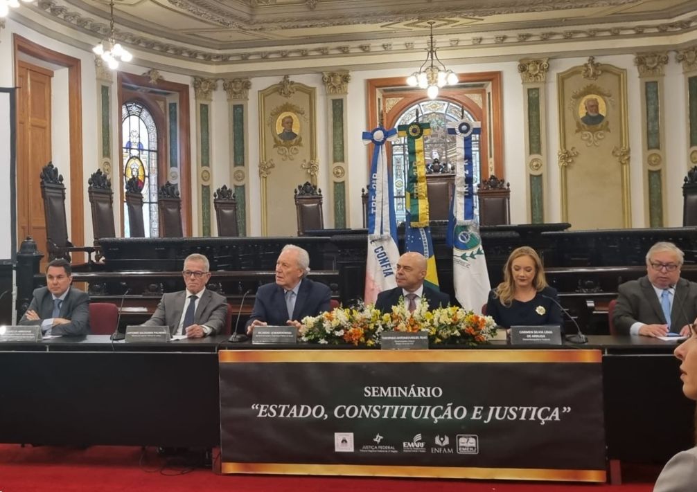 A 1ª vice-presidente do Instituto dos Advogados Brasileiros (IAB), Adriana Brasil Guimarães, representou a entidade, na última sexta-feira (24/10), no seminário Estado, Constituição e Justiça, na Sala de Sessões do Centro Cultural Justiça Federal (CCJF), no Rio de Janeiro. Organizado pela Escola da Magistratura Regional Federal da 2ª Região (Emarf), o evento contou com palestra do ministro da Justiça e Segurança Pública, Ricardo Lewandowski.