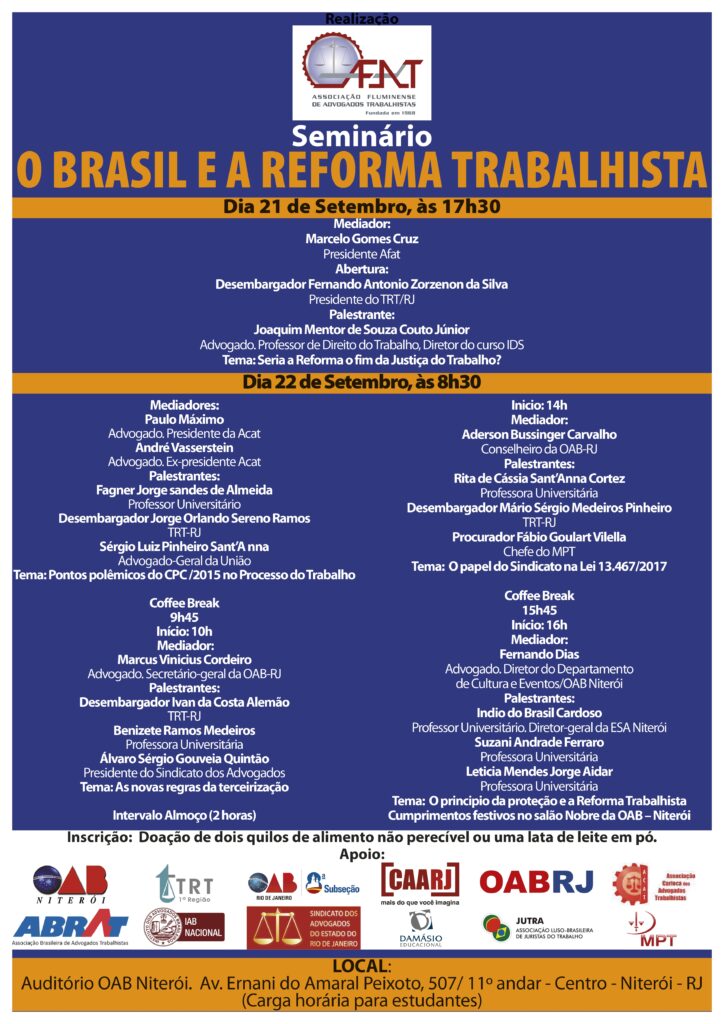 Início » Eventos » Eventos parceiros » Seminário O Brasil e a Reforma Trabalhista