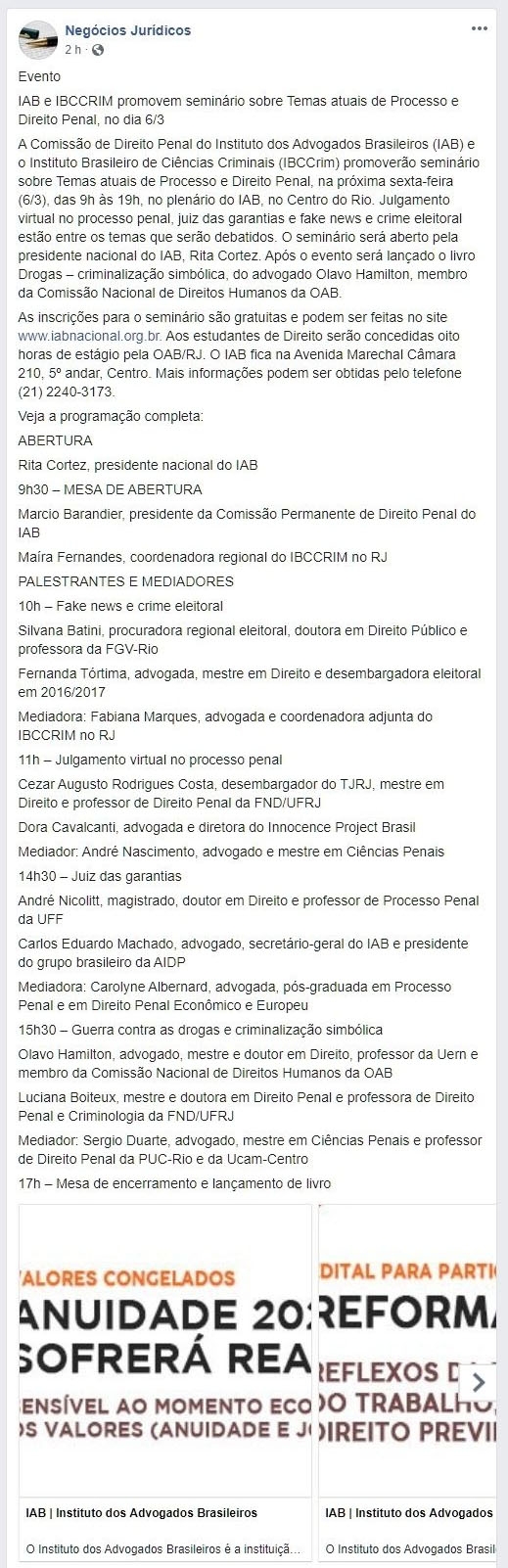 Início » IAB na imprensa » Seminário sobre Temas atuais de Processo e Direito Penal