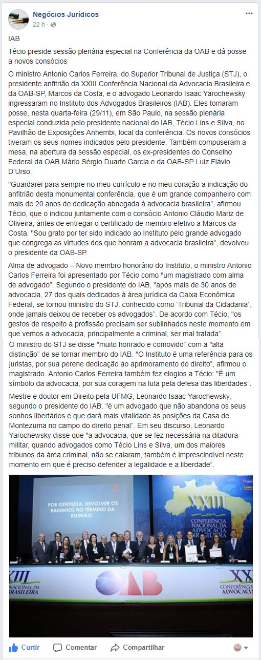 Técio preside sessão plenária especial na Conferência da OAB e dá posse a novos consócios