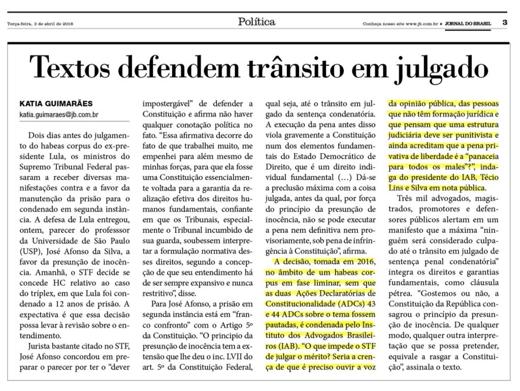 Textos defendem trânsito em julgado